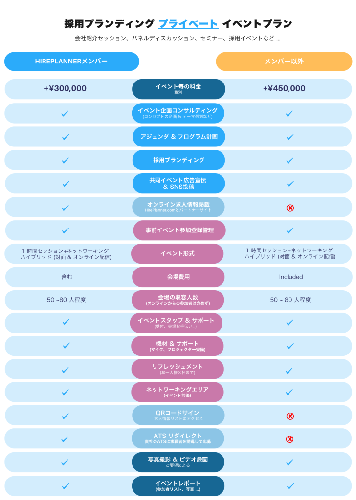 HirePlannerのプラットフォームをご利用でない企業様でも、イベントのみの参加が可能です。